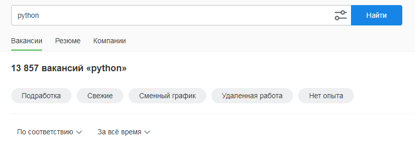 Прямо сейчас компании ищут 13857 специалистов по Python: